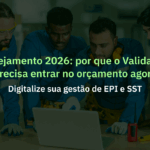 Inclua o Valida EPI no planejamento 2026 Para quem está planejando o próximo ano, a digitalização da gestão de EPI e SST não é tendência — é requisito para eficiência, conformidade legal e ganhos operacionais, e deve entrar no orçamento como prioridade estratégica. Ao migrar do papel para um software [...]